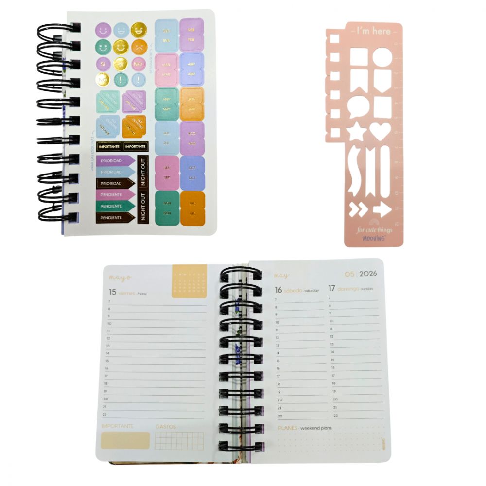 • Incluye sticky notes, stickers, bookmark y bolsa individual