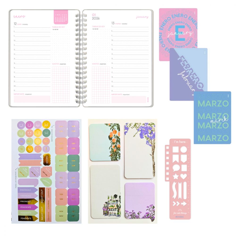 Su encuadernación espiralada facilita el paso de páginas, asegurando que tu programación se mantenga siempre a la vista.