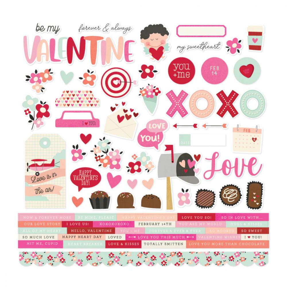 6 hojas de cartulina de diseño de 12x12 a doble cara, incluidas las hojas de elementos recortadas (2 de cada uno de los 3 diseños) y una hoja de pegatinas de cartulina de 12x12 con pegatinas