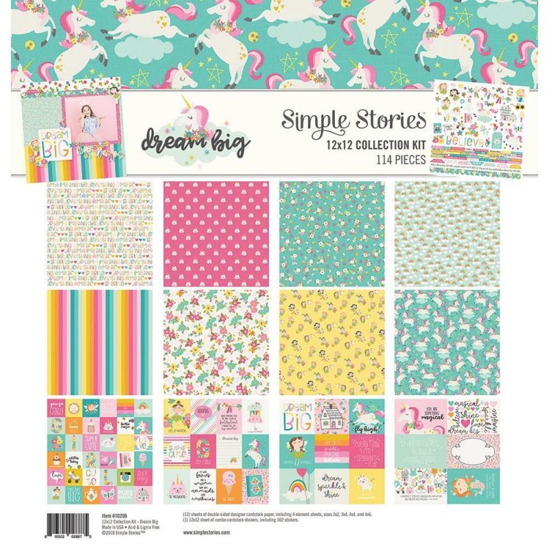 Bloc de papel doble cara Dream Big 12 hojas + stickers 12"x12"