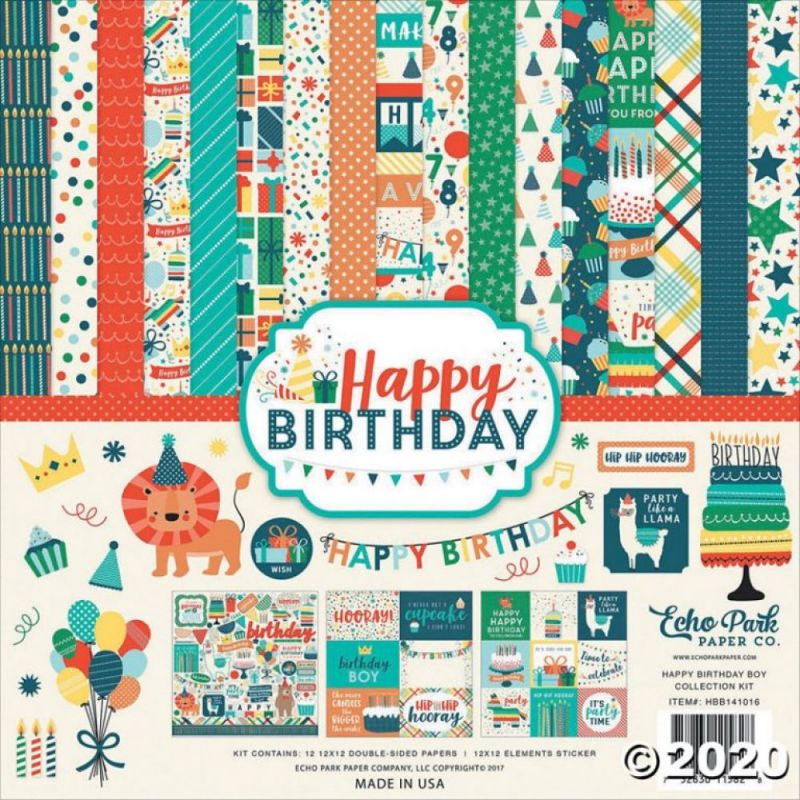 Bloc de papel doble cara Happy Birthday 12 hojas + stickers 12"x12"