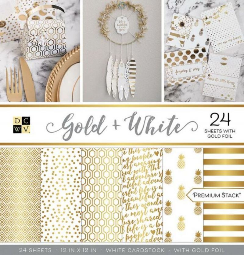 Bloc de papel Gold + White 24 hojas con foil12"x12"