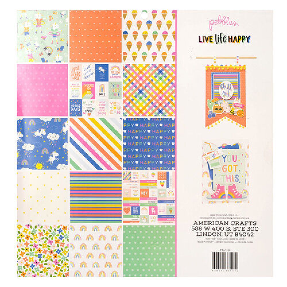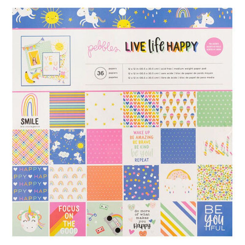 BLOC DE PAPEL UNA CARA LIVE LIFE HAPPY 36 HOJAS 12"X12"