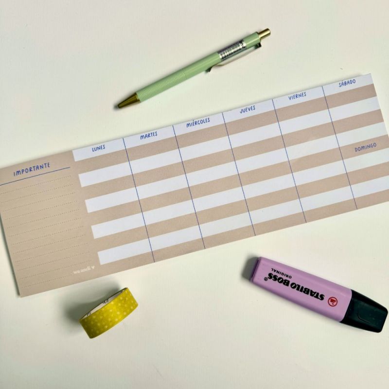 Planificador semanal horizontal con sección Importante.