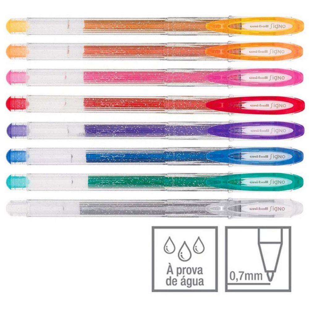 - Bolígrafo gel de tinta glitter altamente brillante que resalta fácilmente sobre papeles oscuros.