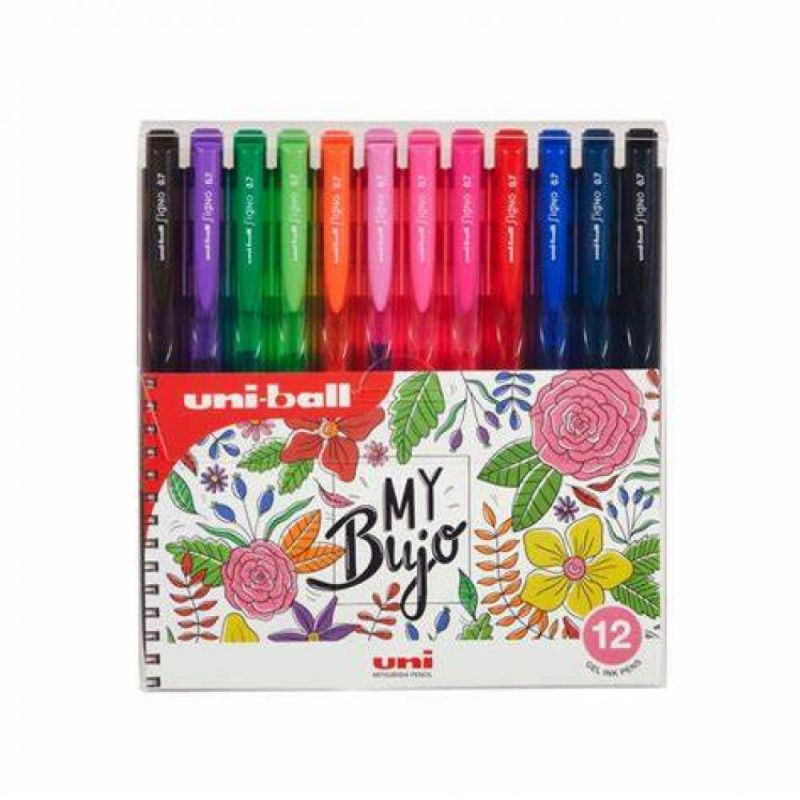 Bolígrafos de Tinta Gel, Retráctiles 0.7 mm – My Bujo, Estuche de 12 Colores – Floral