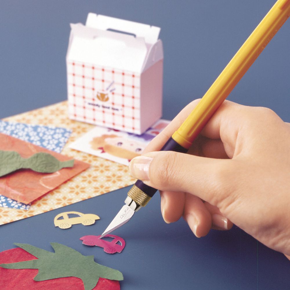 Cuchillo de arte profesional con mango ComfortGrip y cambio rápido de hoja, diseño perfectamente equilibrado y dispositivo antivuelco.