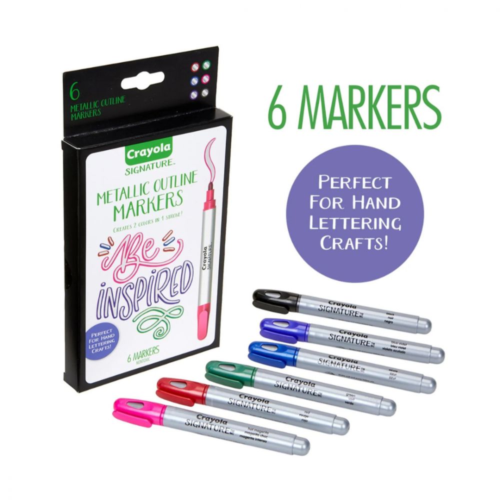 Bs. 170.00Los marcadores de pintura Crayola Signature Metallic Outline muestran 2 colores en uno solo.