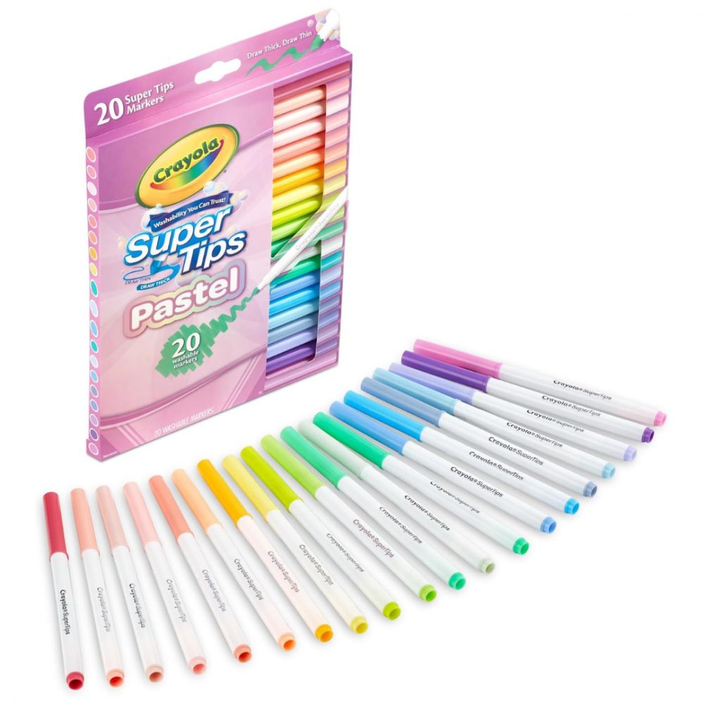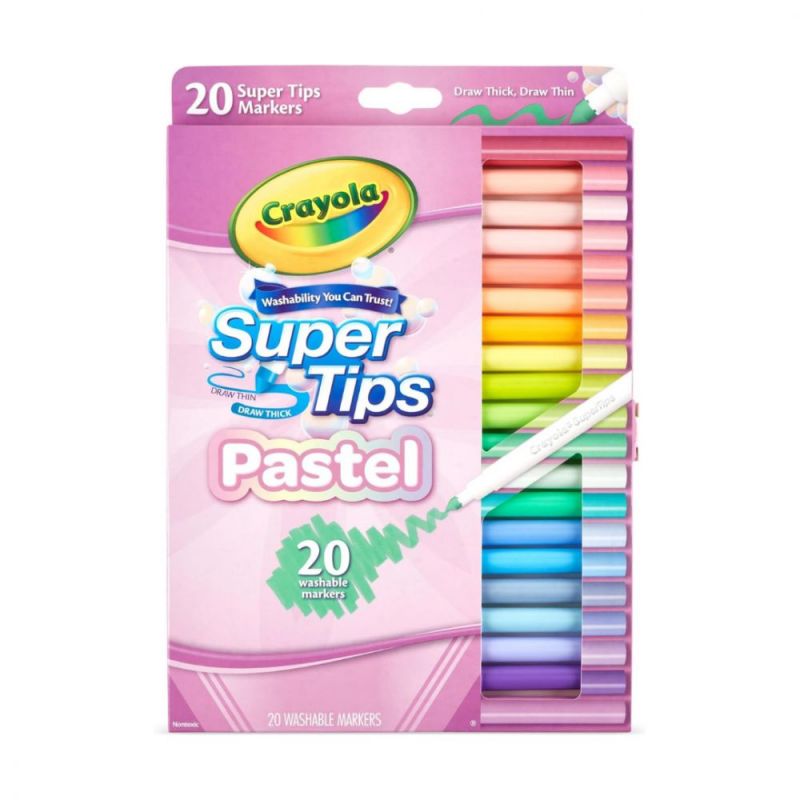 Bs. 105.00- Pon tus ideas en papel con los marcadores lavables Crayola Pastel Supertip. Cada marcador cuenta con un Supertip único que puede crear líneas gruesas o delgadas, y con un surtido de colores suaves para elegir, estos marcadores proporcionan un toque versátil a tu arte.