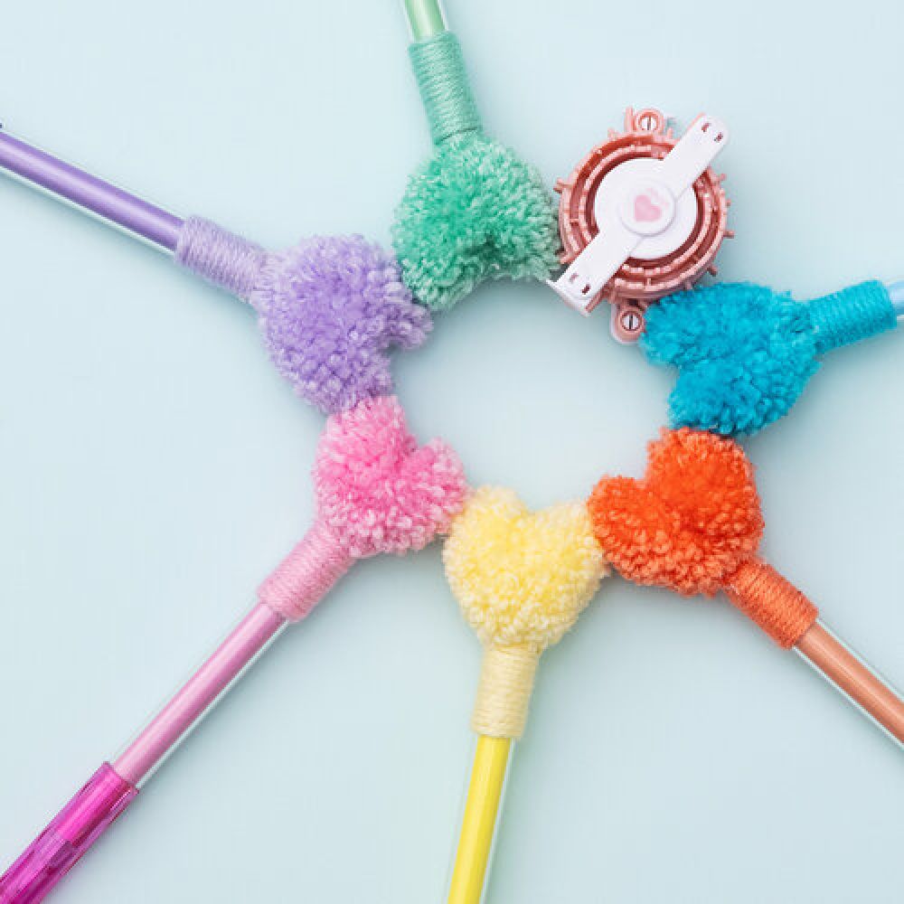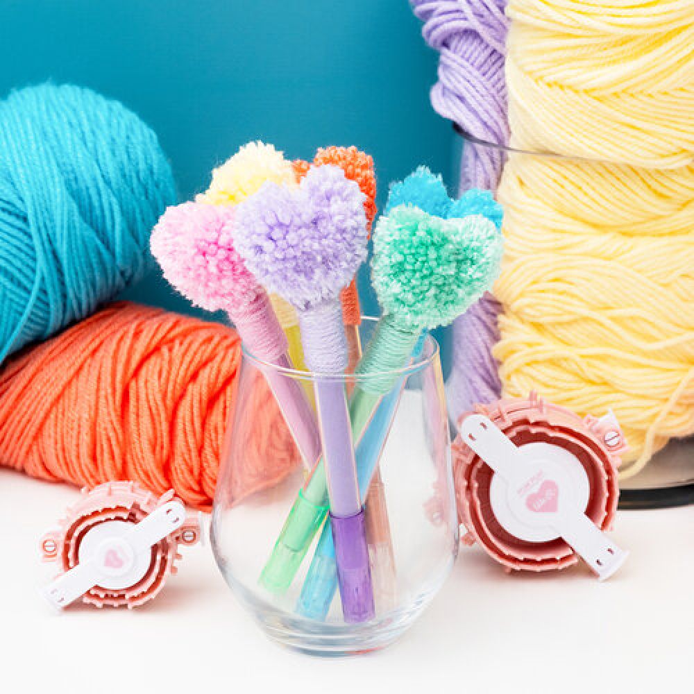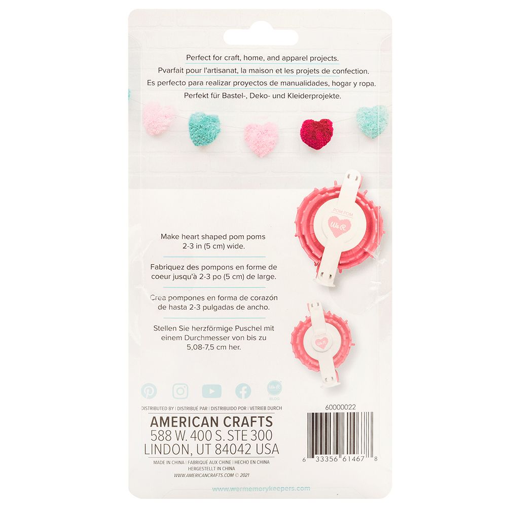 Este conjunto de We R Memory Keepers, le permite hacer pompones en forma de corazón que varían en tamaño de 2 a 3 pulgadas o 5 a 7,5 cm de ancho. Son perfectos para proyectos de manualidades, hogar y ropa.