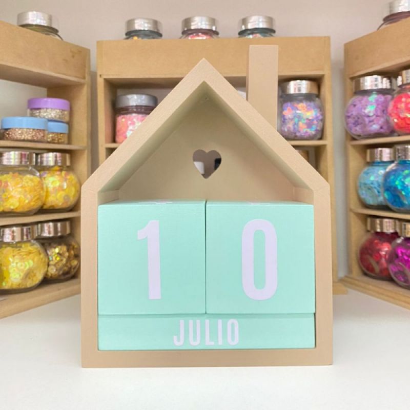Material: Madera con 5 piezas, 3 piezas de meses y 2 cubos de números que te permiten colocar todas las fechas del año.