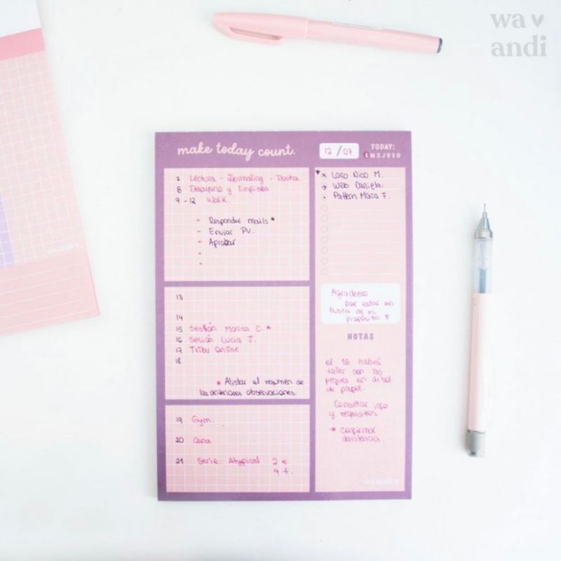 - Es el bloc que necesitas para organizar tus días, cuenta con 3 secciones principales que puedes utilizar para tus tareas de la mañana, tarde y noche, aunque también puedes distribuir tus tareas de la casa trabajo y estudios o hijos por ejemplo.