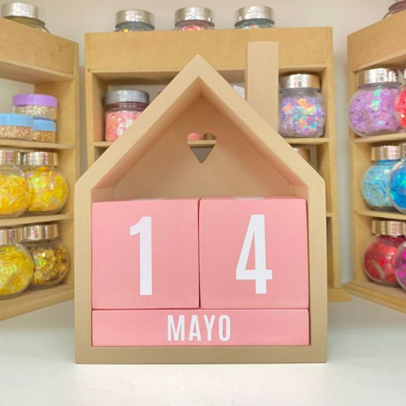 Calendario Perpetuo Rosa Pastel, Casa de Madera