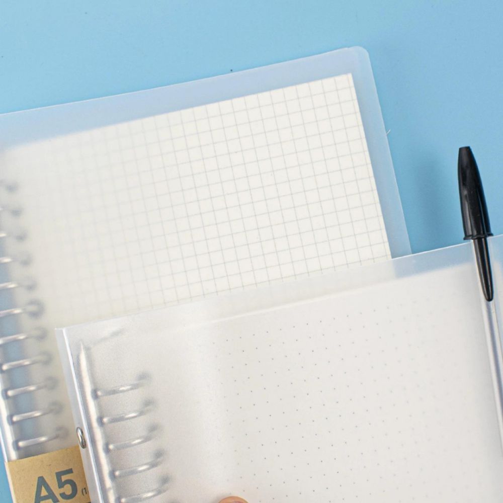 Si te gusta organizar tus apuntes por fecha/tema o reordenar las secciones de tu bullet journal constantemente, esta libreta estilo carpeta es perfecta.