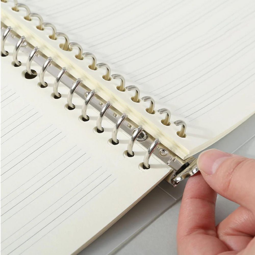 Tiene un anillado en el que las hojas quedan firmes.