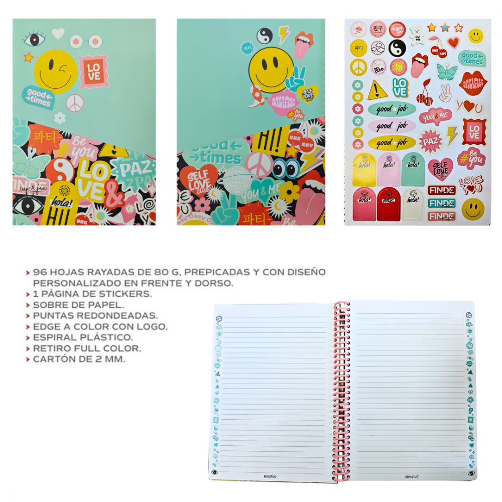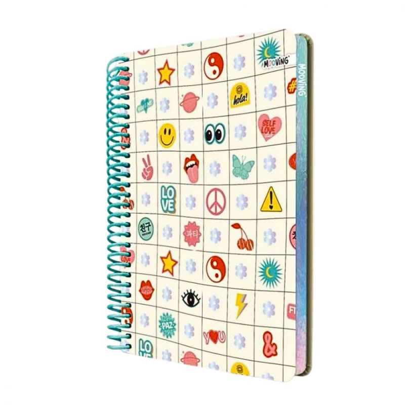 Anillado plástico ultra resistente a tono con el diseño del cuaderno.