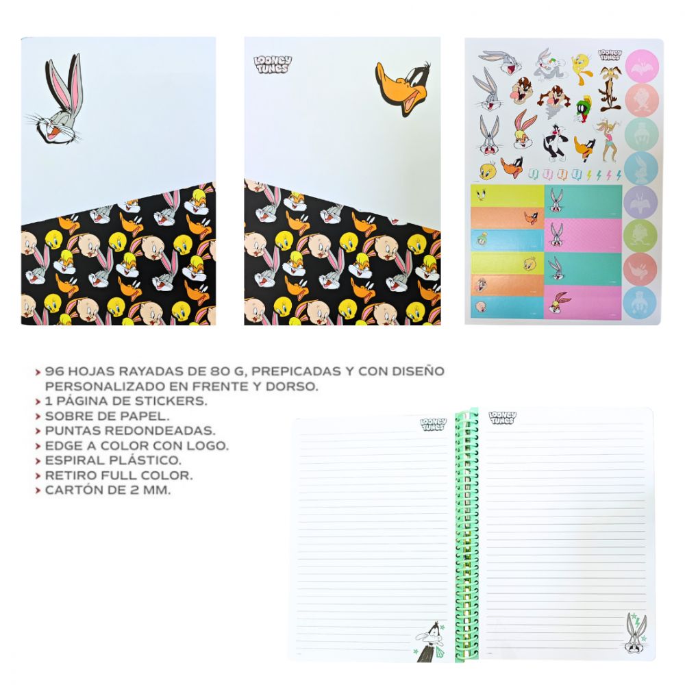 Cuaderno carta espiral Looney Tunes caritas
