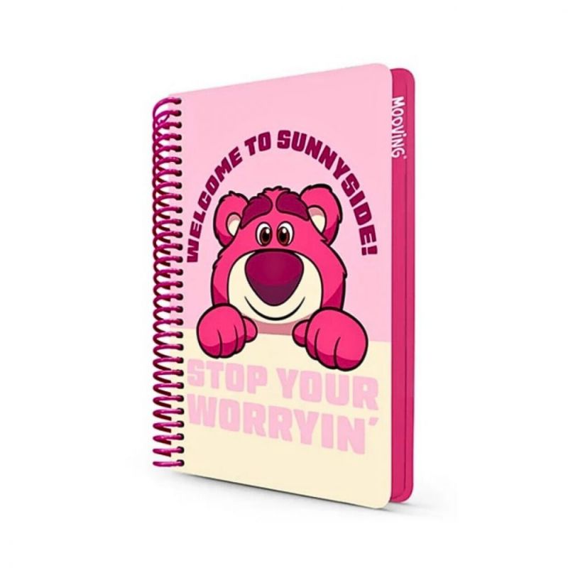 Anillado plástico ultra resistente a tono con el diseño del cuaderno.