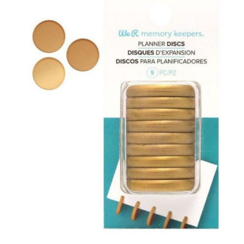 9 Discos o anillos de plástico color Oro en acabado aperlado que miden 3.10 cm de diámetro