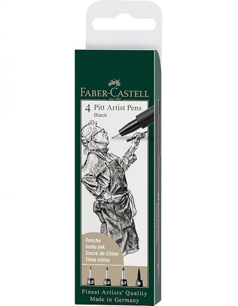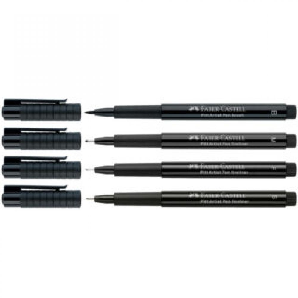 Estilógrafos, Rotuladores de Tinta China Faber-Castell Pitt Artist Pens, Set de 4 Piezas, Negro, Puntas Surtidas (S,F,M,B)