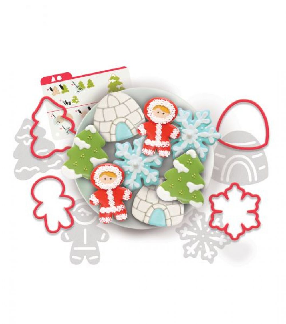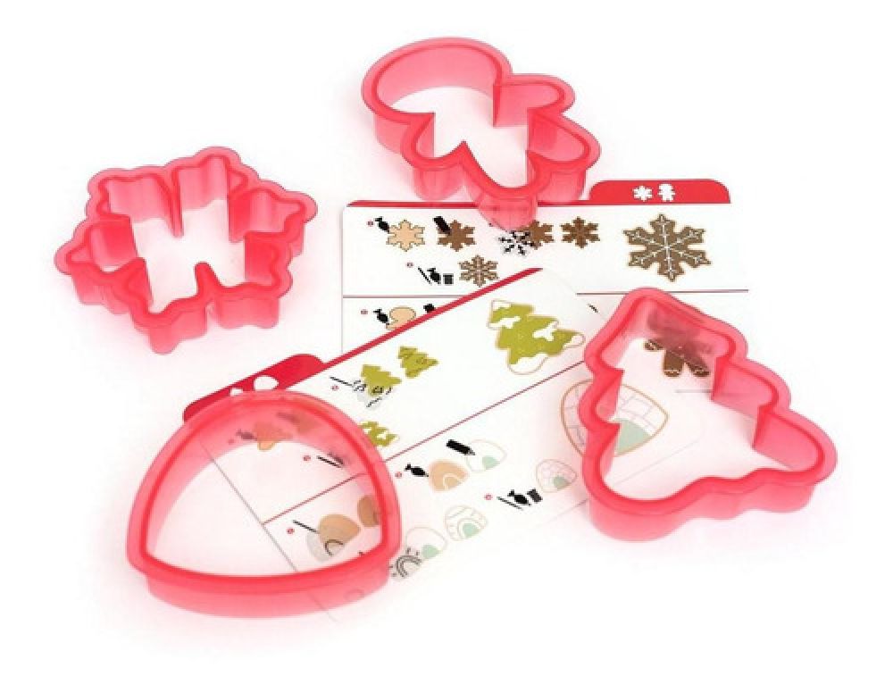 Incluye 4 moldes para galletas . 8 plantillas y 2 tarjetas de instrucciones