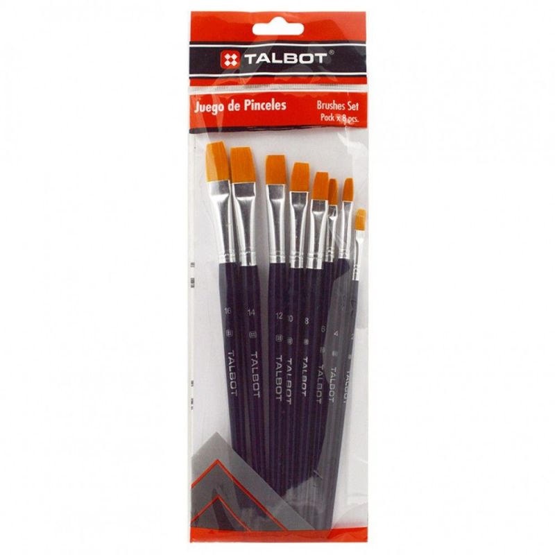 Juego de pinceles set 8 piezas Nylon plano