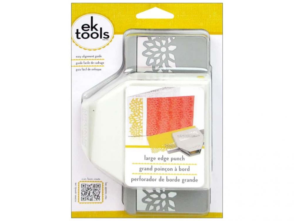 Esta perforadora de EK agregara un borde troquelado continuo a sus tarjetas, cinta de papel, y las paginas del libro de recuerdos. Guía impresa asegura una colocación precisa de golpe preciso.