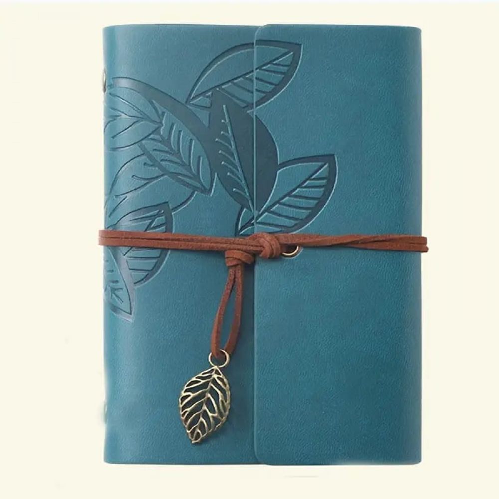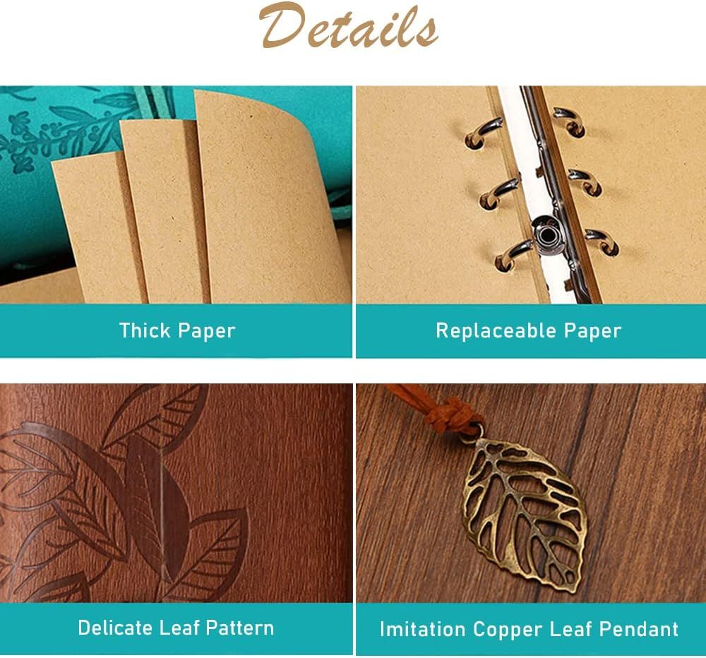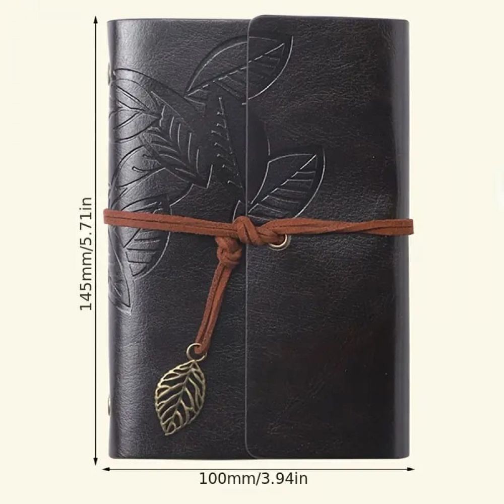 La funda de cuaderno vintage es de cuero de primera calidad, y hay algunas hojas en la cubierta, te permite sentir su encanto.