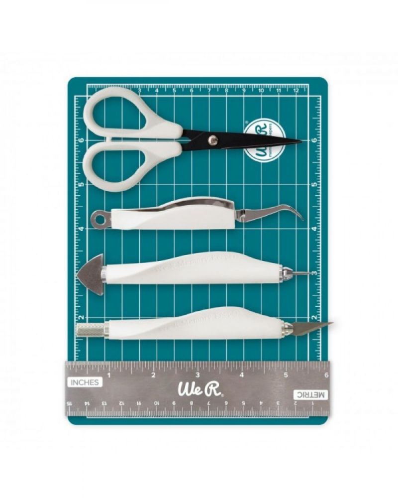 Bs. 250.00Este mini kit de herramientas es perfecto para cualquier artesano de papel. Cuenta con una variedad de las herramientas más esenciales que los scrapbookers y fabricantes de tarjetas están buscando continuamente. El contenido completo del kit incluye una alfombrilla magnética de 6 × 8 pulgadas, una regla magnética de 6 pulgadas, un par de tijeras, un par de pinzas de acción inversa, un cuchillo de arte y una herramienta para perforar y colocar un brad.