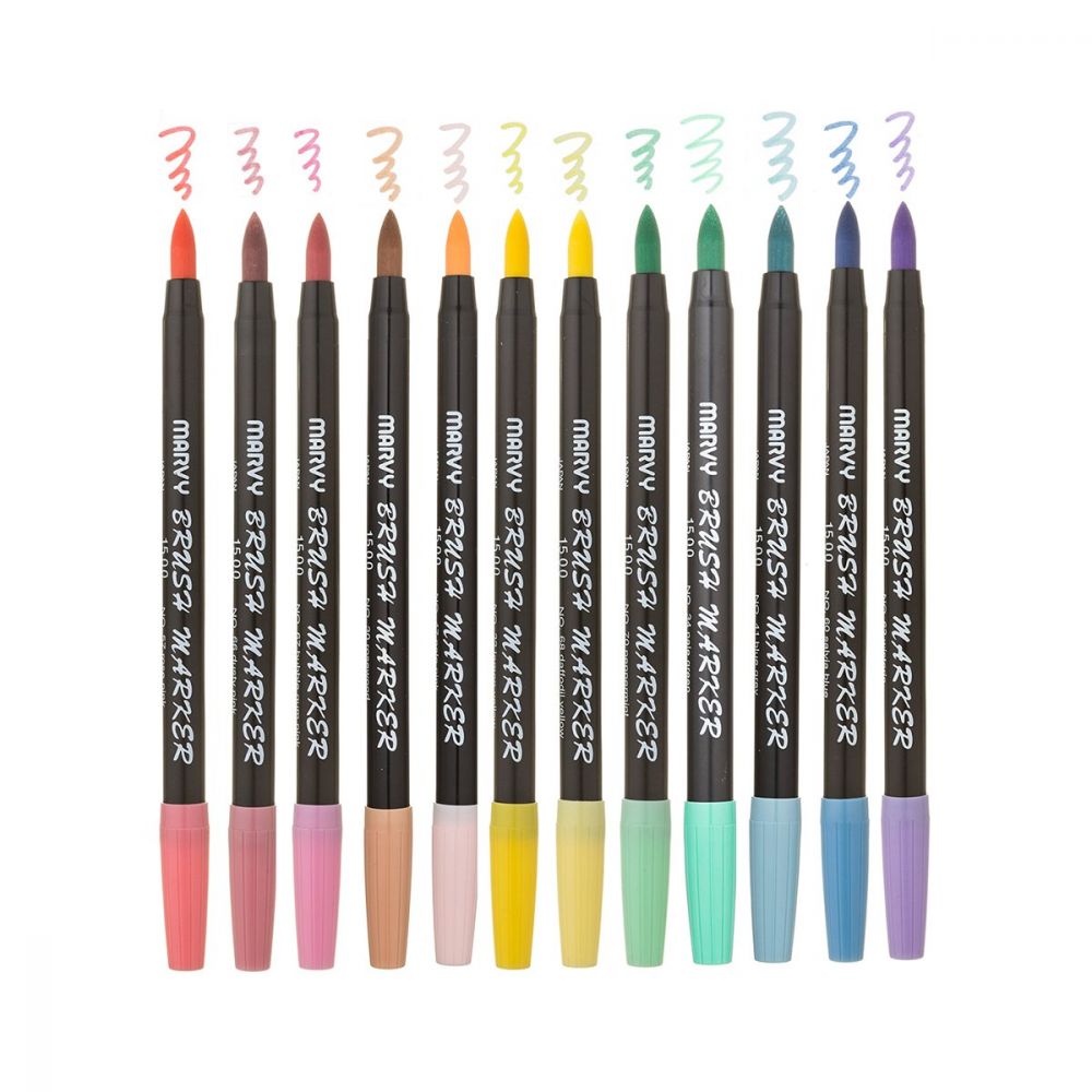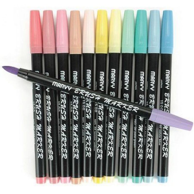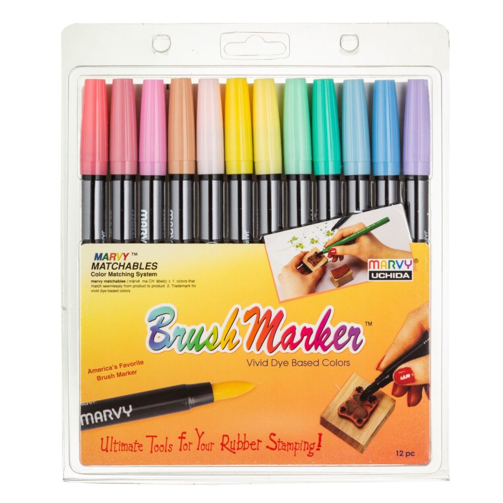 12 colores surtidos por juego. Los marcadores de pincel se pueden utilizar para estampar, dibujar, pintar, hacer álbumes de recortes y más. Son tintas a base de agua, no tóxicas y sin ácido que se pueden mezclar. Punta de cepillo grande.