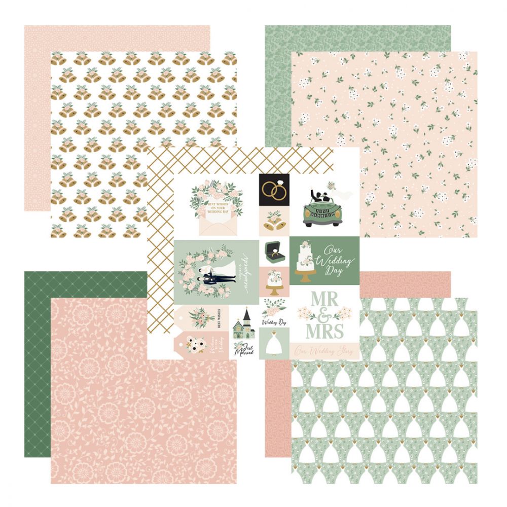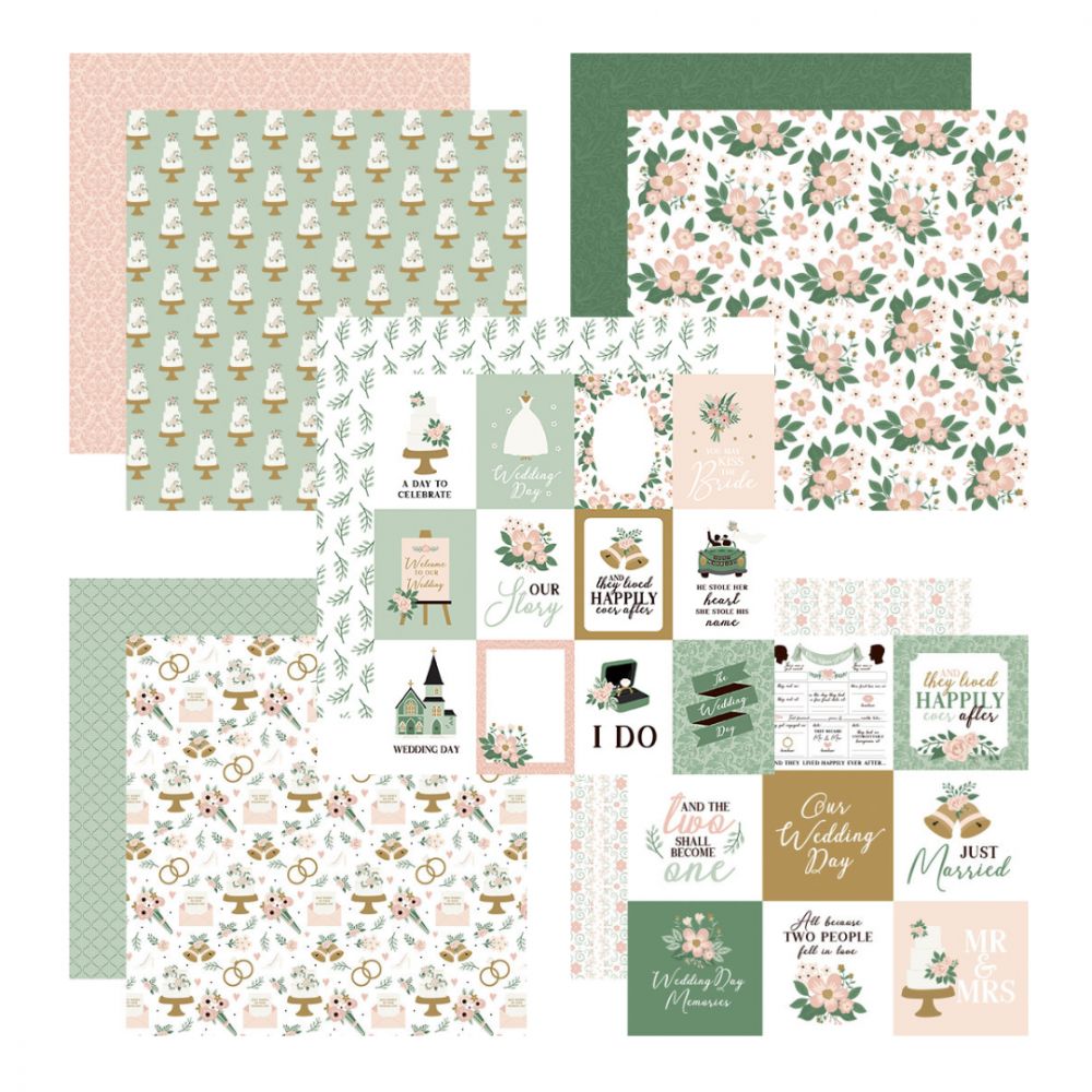 - Doce papeles de doble cara de 12" x 12" que presentan diseños únicos en cada lado.