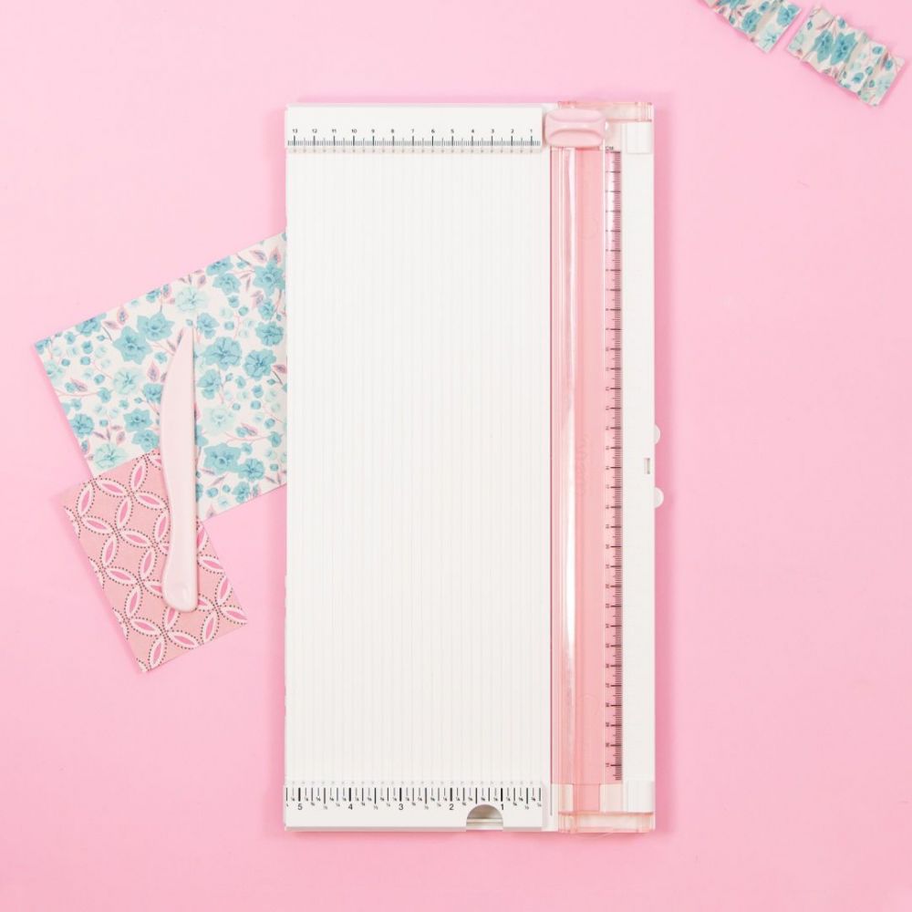 Esta herramienta de corte y plegado, dos en uno, es ideal para crear cajas, tarjetas, sobres y todo tipo de cortes rectos y precisos en nuestros proyectos de scrapbooking. Amplia superficie de trabajo, se pliega para ocupar poco espacio.