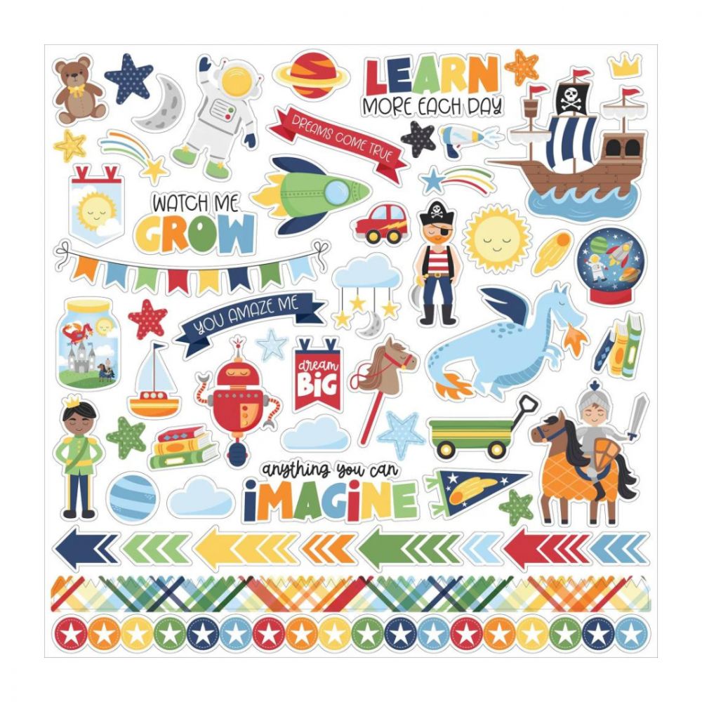 Una hoja de pegatinas de elementos de 12" que destaca algunos de nuestros detalles favoritos de la colección.