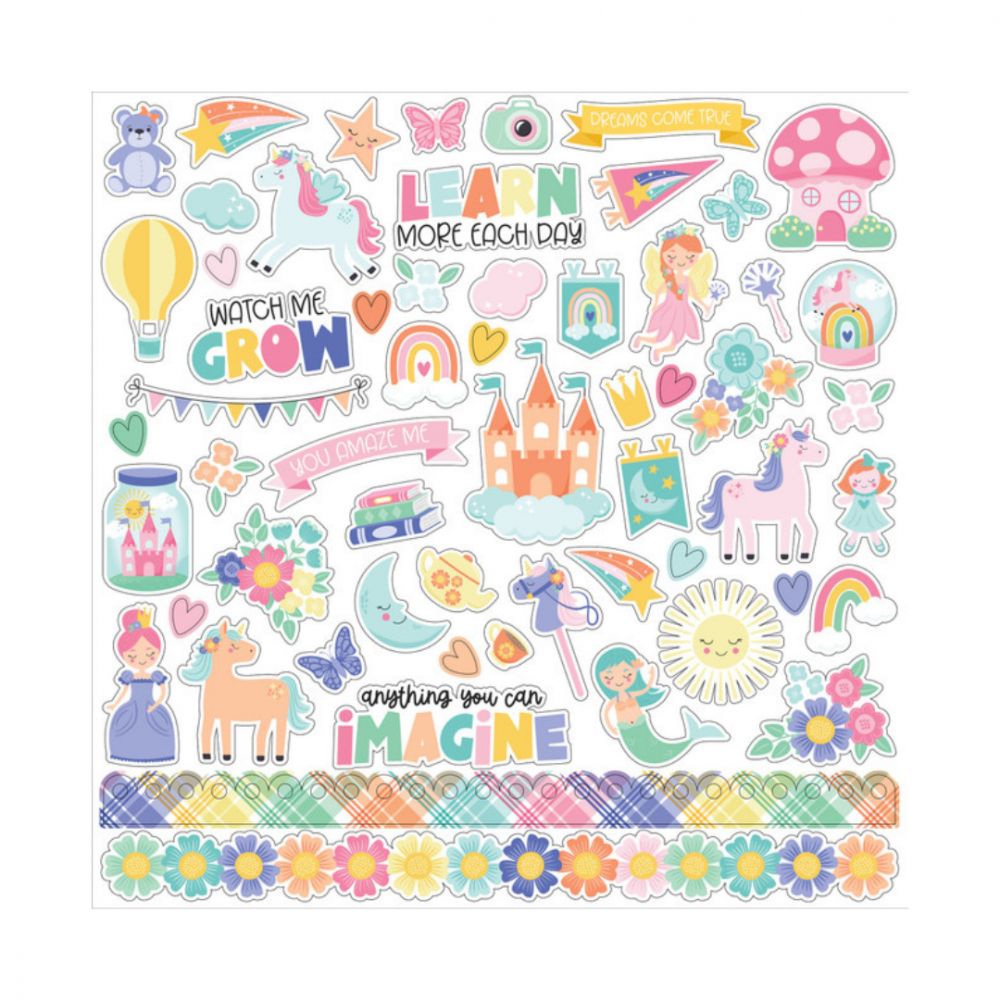 Una hoja de pegatinas de elementos de 12" que destaca algunos de nuestros detalles favoritos de la colección.