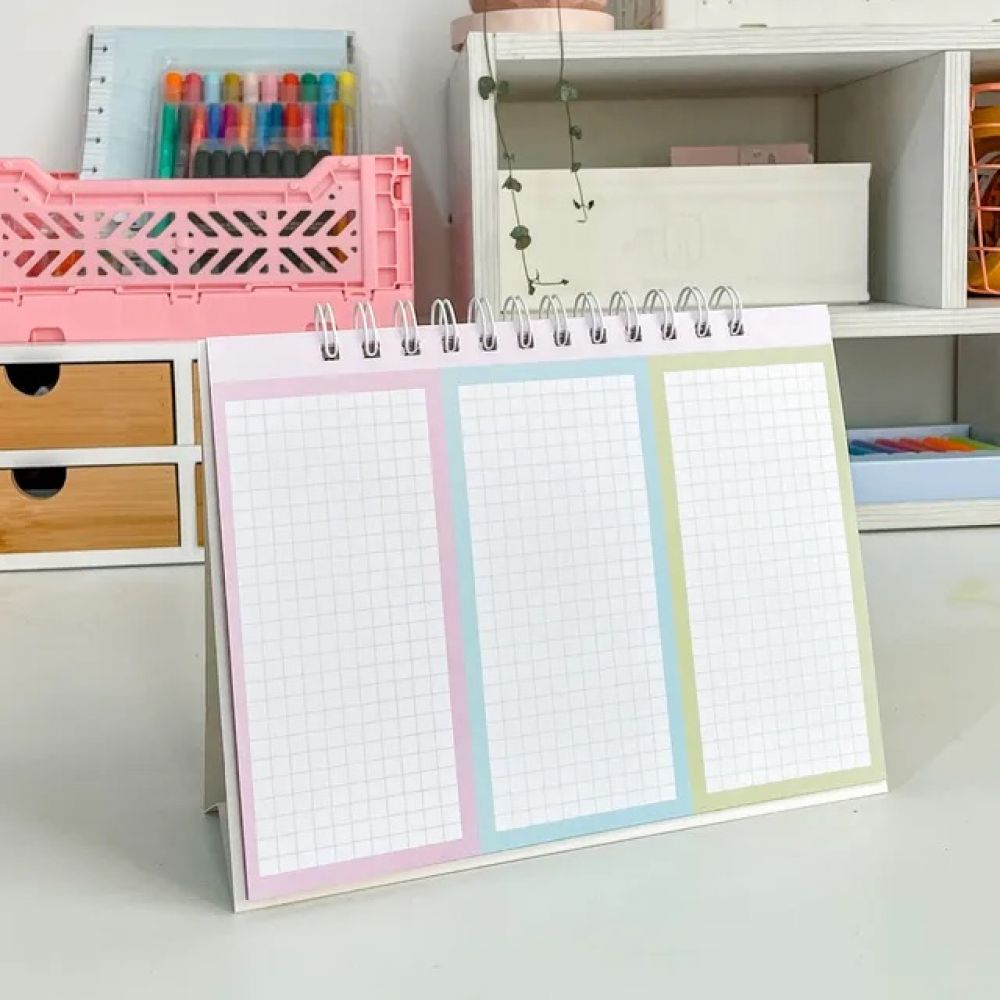 En el reverso tienes 3 columnas para hacer listas o el método Kanban.