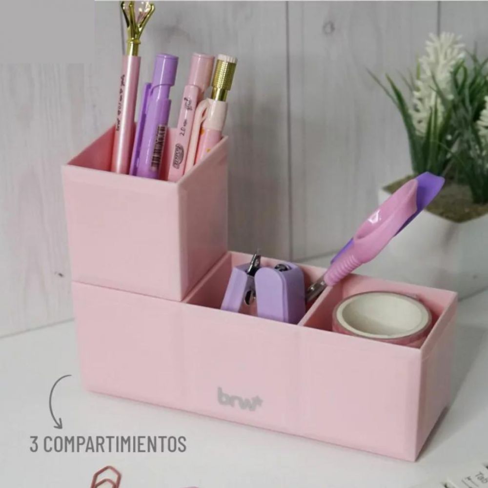 Posee 3 compartimientos para organizar todos tus materiales, es posible utilizarlo tanto de forma vertical u horizontal y almacenar marcadores, bolígrafos, washi tapes, abrochadoras, y todo lo que quieras!
