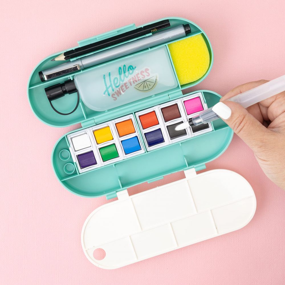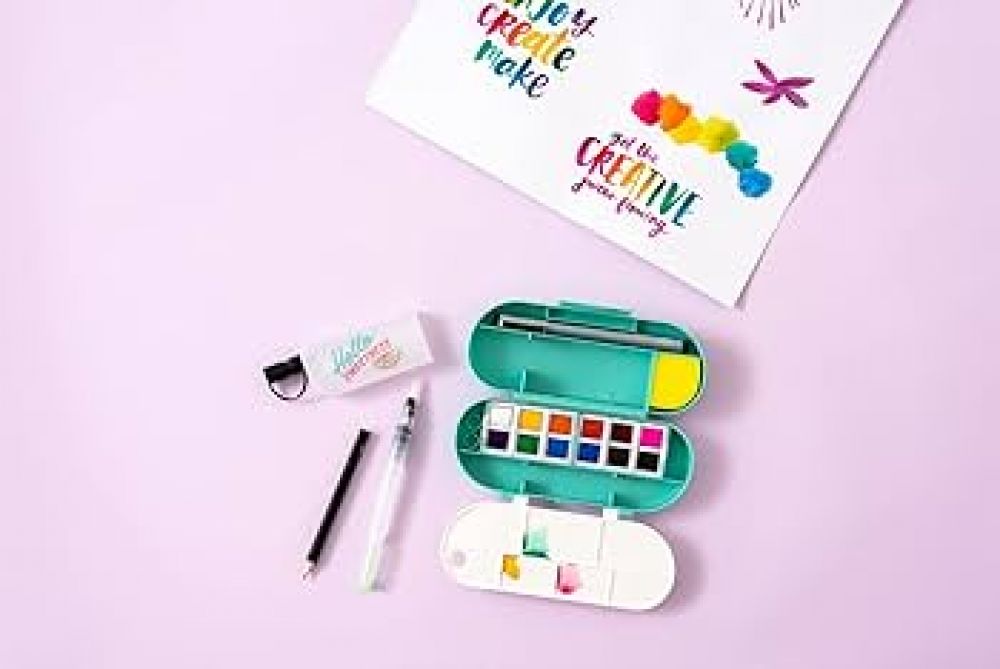 Bs. 230.00INCLUYE: 12 pinturas de acuarela, un lápiz, un bolígrafo, una botella de agua, una esponja y un pincel de agua recargable.