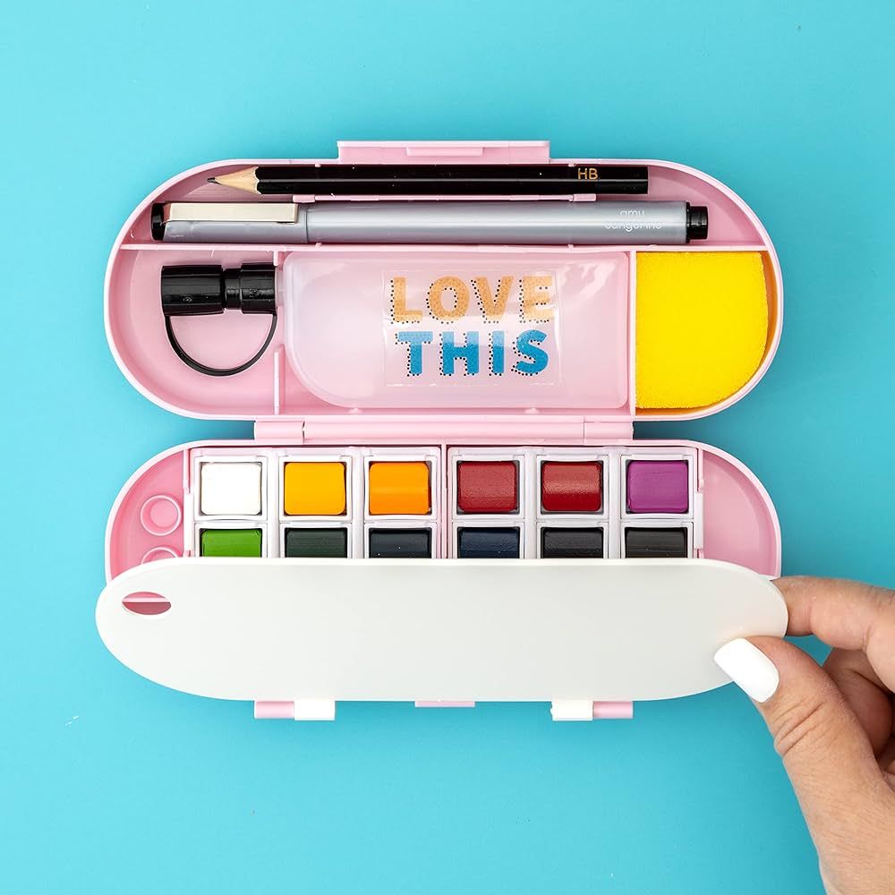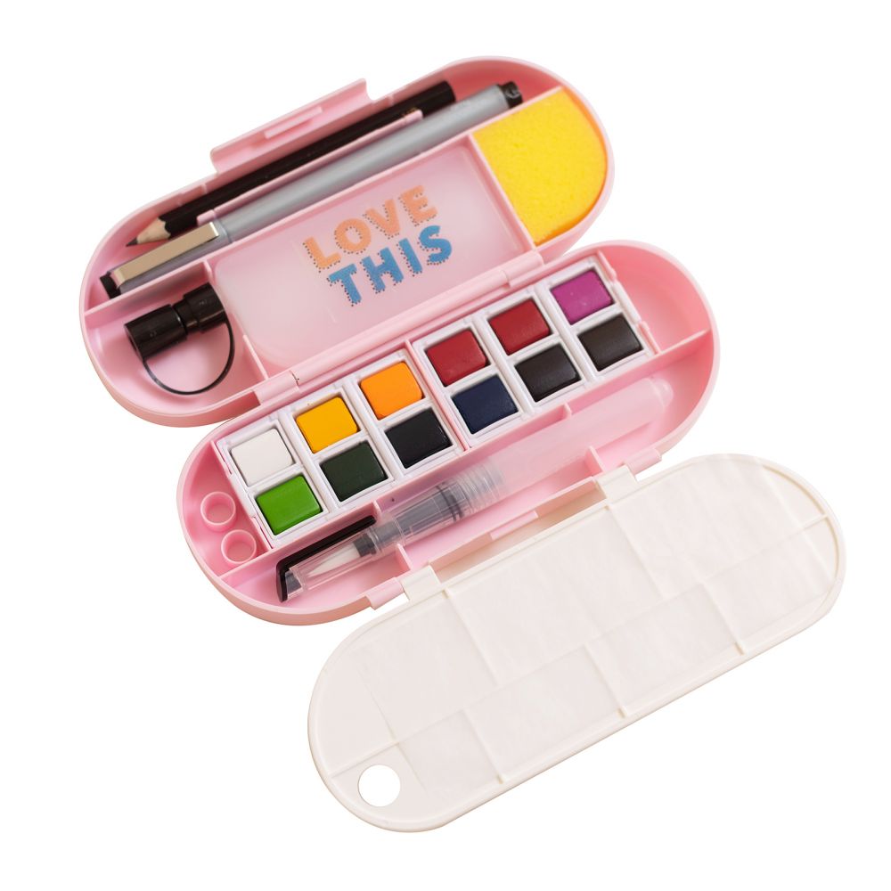 Bs. 230.00¡Crea hermosas obras de arte, incluso sobre la marcha, con este kit de acuarela! Viene con todo lo que necesitas para ser creativo, incluso en el autobús. Este paquete incluye 1 lápiz, 1 bolígrafo, 1 botella de agua, 1 esponja, 12 pinturas de acuarela y 1 pluma de pincel de agua recargable.