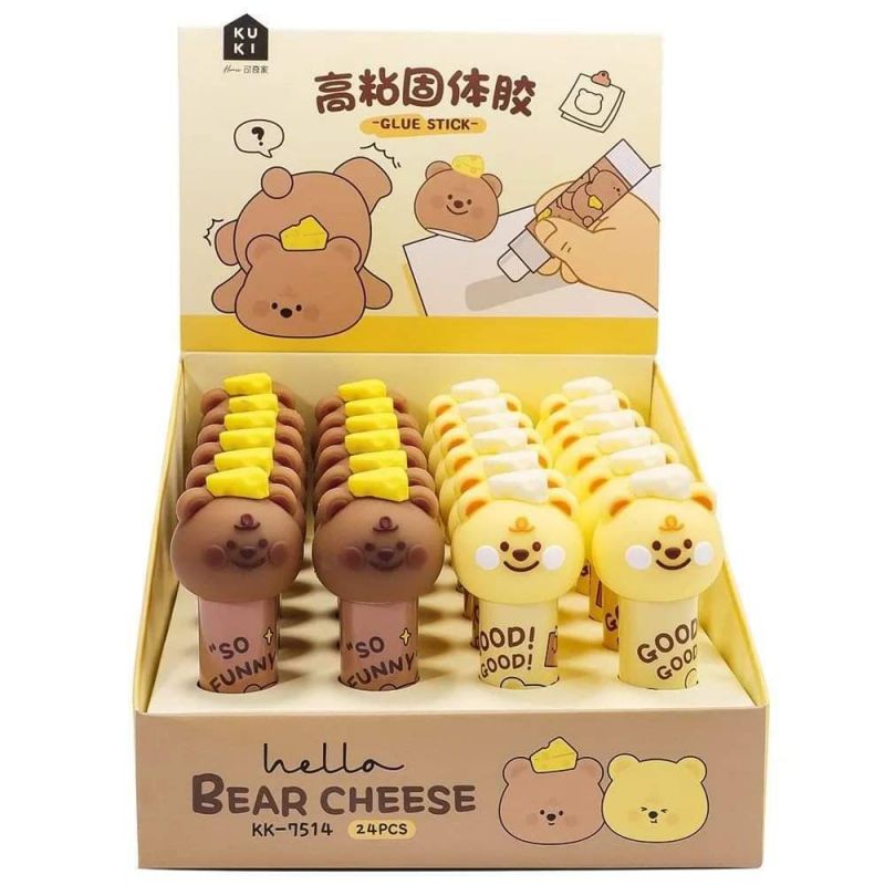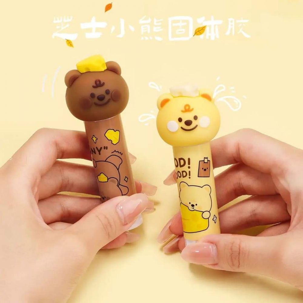Pegamento en barra de de 9cm x 3cm en forma de ositos con quesito en la cabeza.