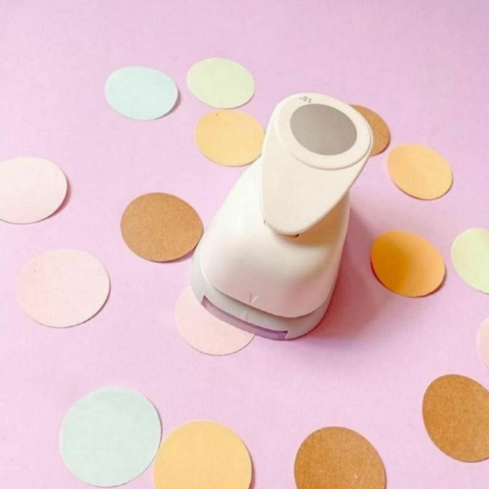 - Práctica y cómoda: crea círculos de forma rápida y sin esfuerzo. La palanca es fácil de presionar hacia abajo para que incluso los niños puedan usar esta perforadora. La parte inferior la perforadora tiene una cubierta deslizante en el borde de corte para atrapar los recortes.