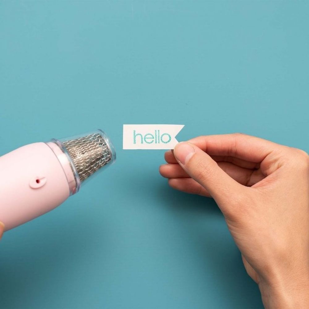 Esta pistola de calor de We R es perfecta para hacer trabajos de embossing en caliente, secar tintas o pinturas, o incluso para trabajar con técncias con plástico retráctil. Aunque pueda parecerte un secador, tiene la característica de que aplica mucho calor sin apenas aire, por lo que mantiene los polvos de embossing en su sitio, no los esparce y los funde de forma suave.