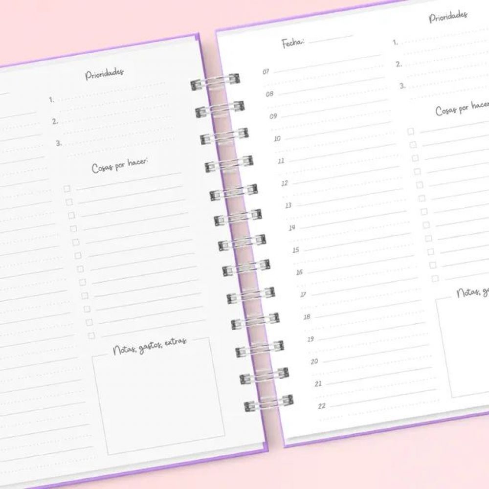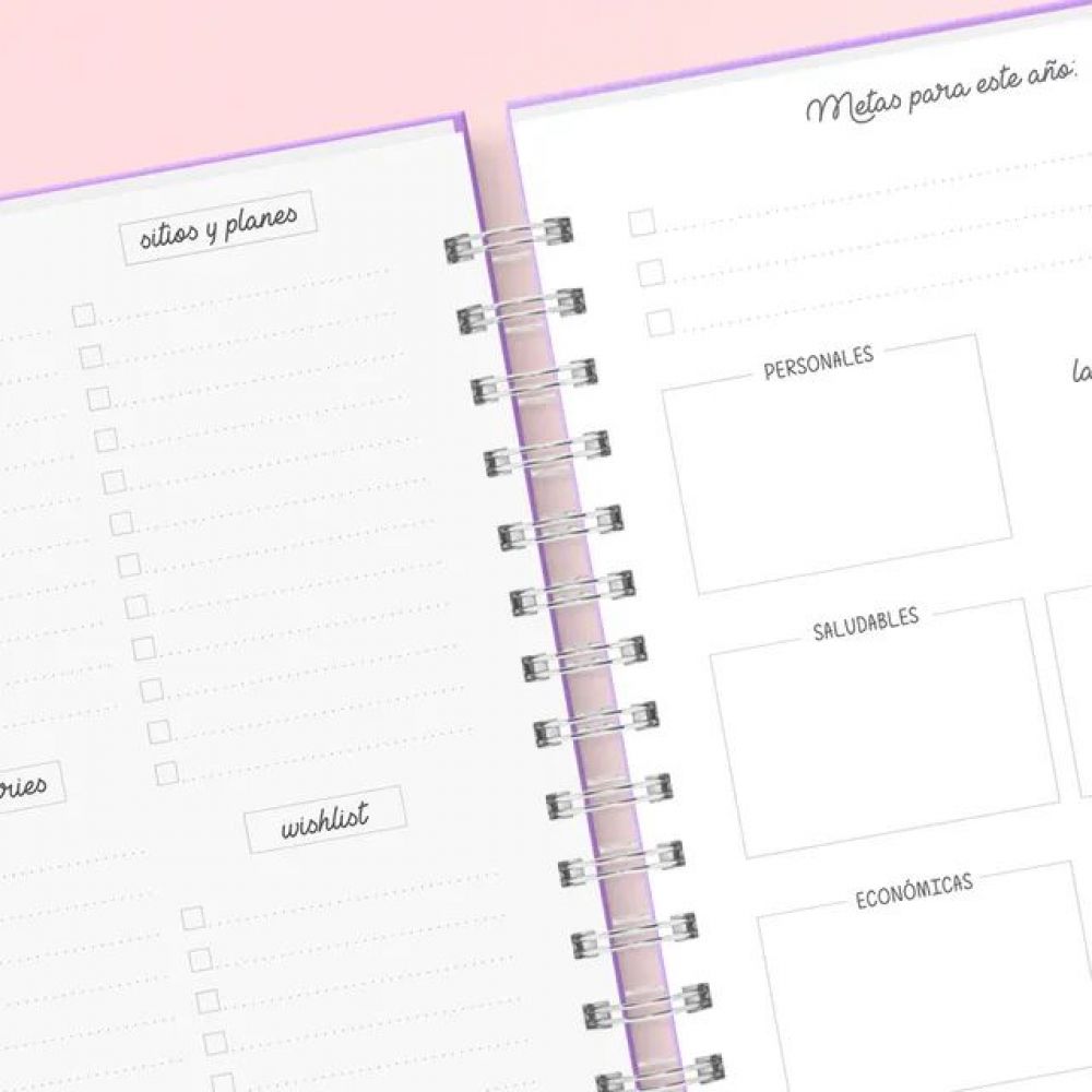 Incluye planificadores mensuales, metas, listas, de importantes, stickers y señalador.