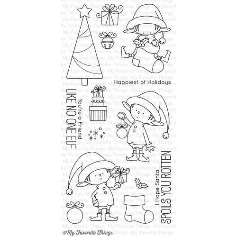 Bs. 190.00Sello de los elfos de Papá Noel de My Favourite Things. Papá Noel es el rostro de unas alegres vacaciones navideñas, pero todos sabemos que los elfos son los verdaderos responsables de la operación. ¡Con este set de Birdie Brown, se celebran como es debido! Construye una escena festiva con el trío de elfos, un dulce árbol y una variedad de accesorios y sentimientos a juego.