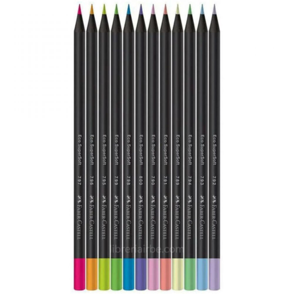 Set 12 EcoLápices de Colores Faber-Castell SuperSoft – (6 Neón + 6 Pastel)