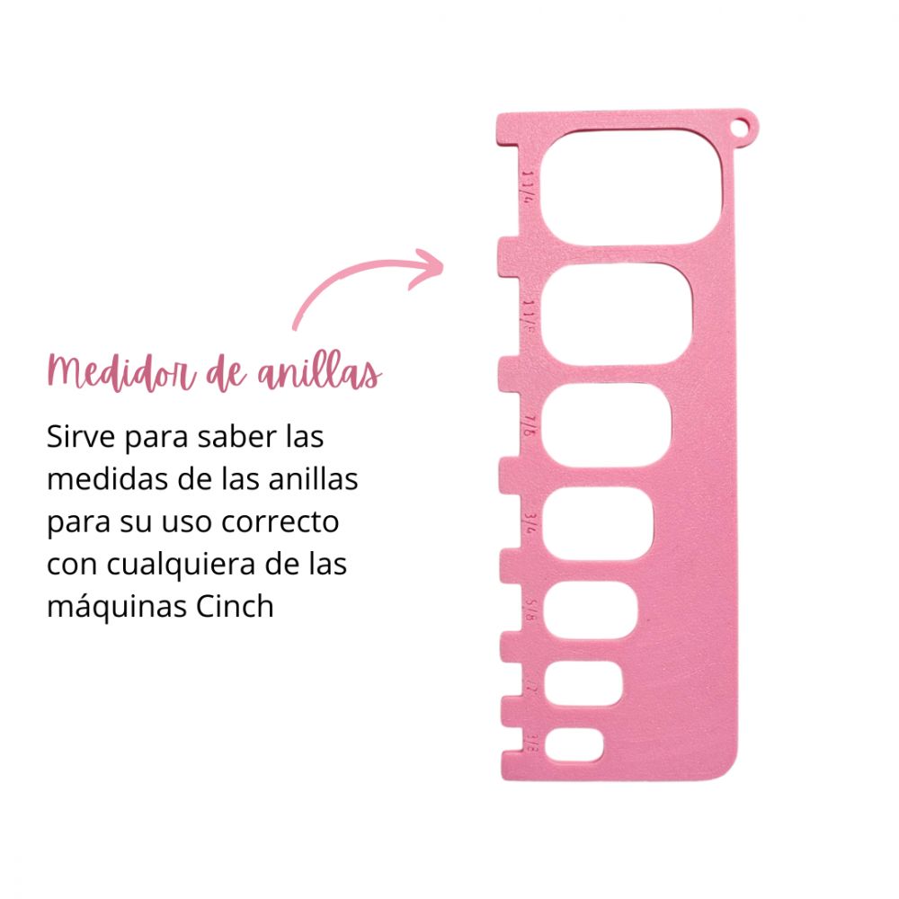 Medidor de anillas: Sirve para saber las medidas de las anillas para su uso correcto con cualquiera de las máquinas Cinch