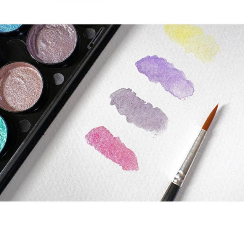 - NOTA: el contenido de cada pastilla es menor al de las acuarelas convencionales (no metálicas).