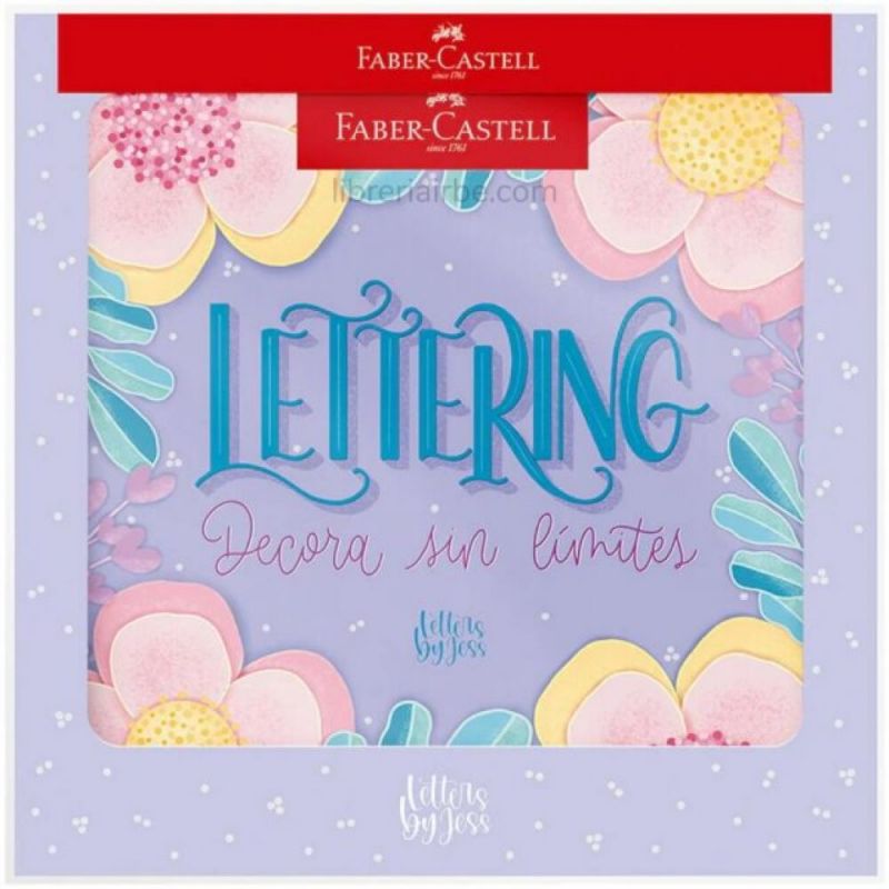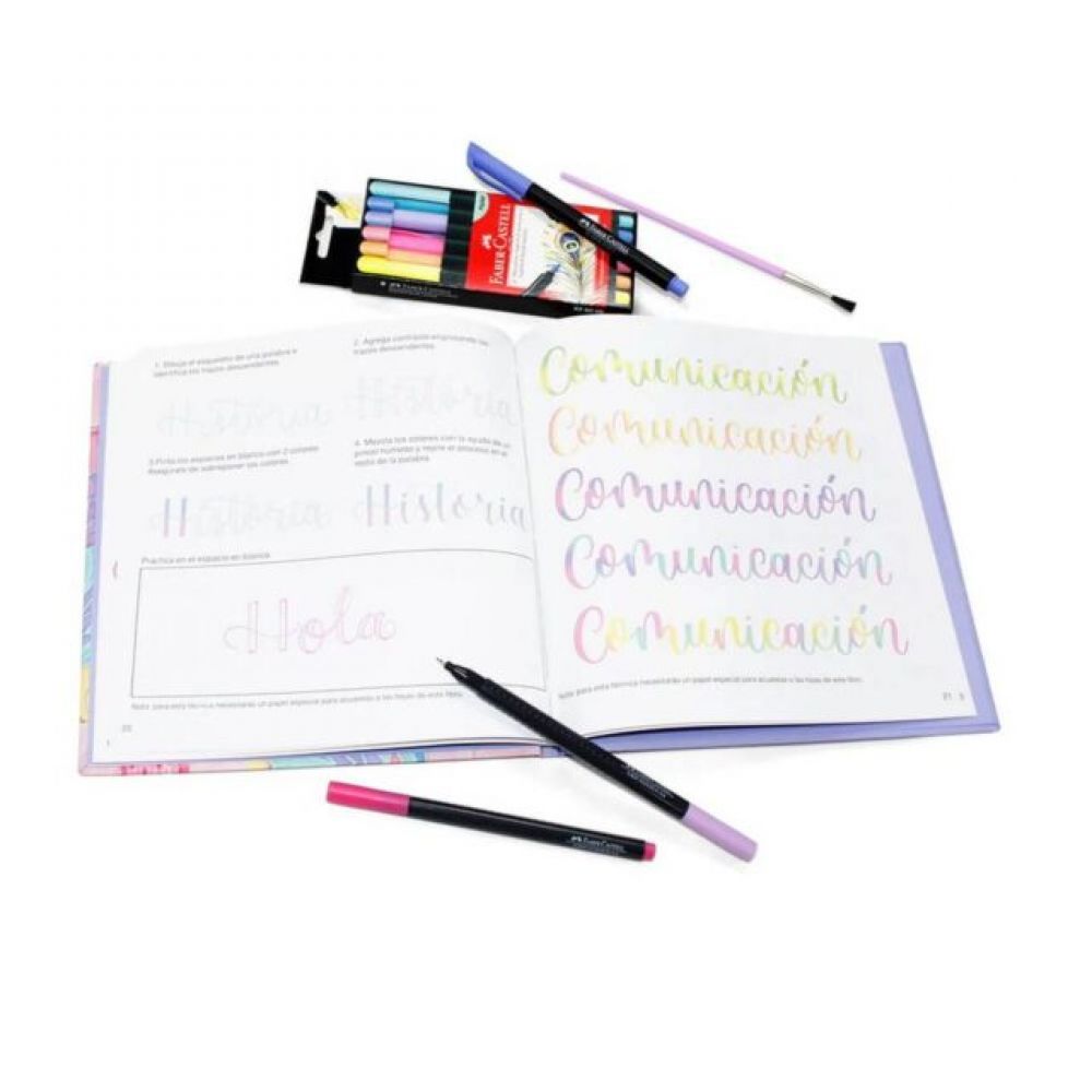 Set de Lettering Faber-Castell Decora sin Límites, con Libro para Practicar Lettering, 6 Marcadores SuperSoft Pastel, 2 Micropuntas Grip Finepen y Pincel
