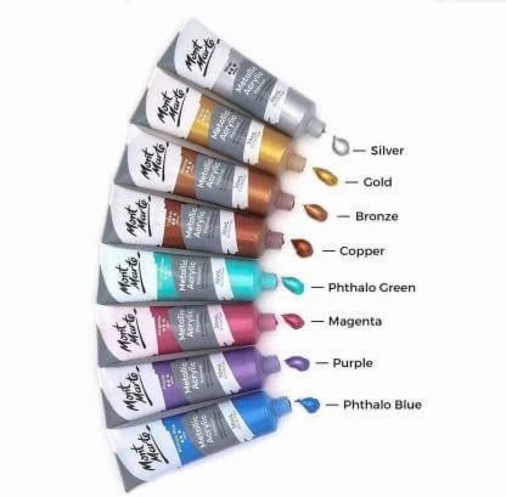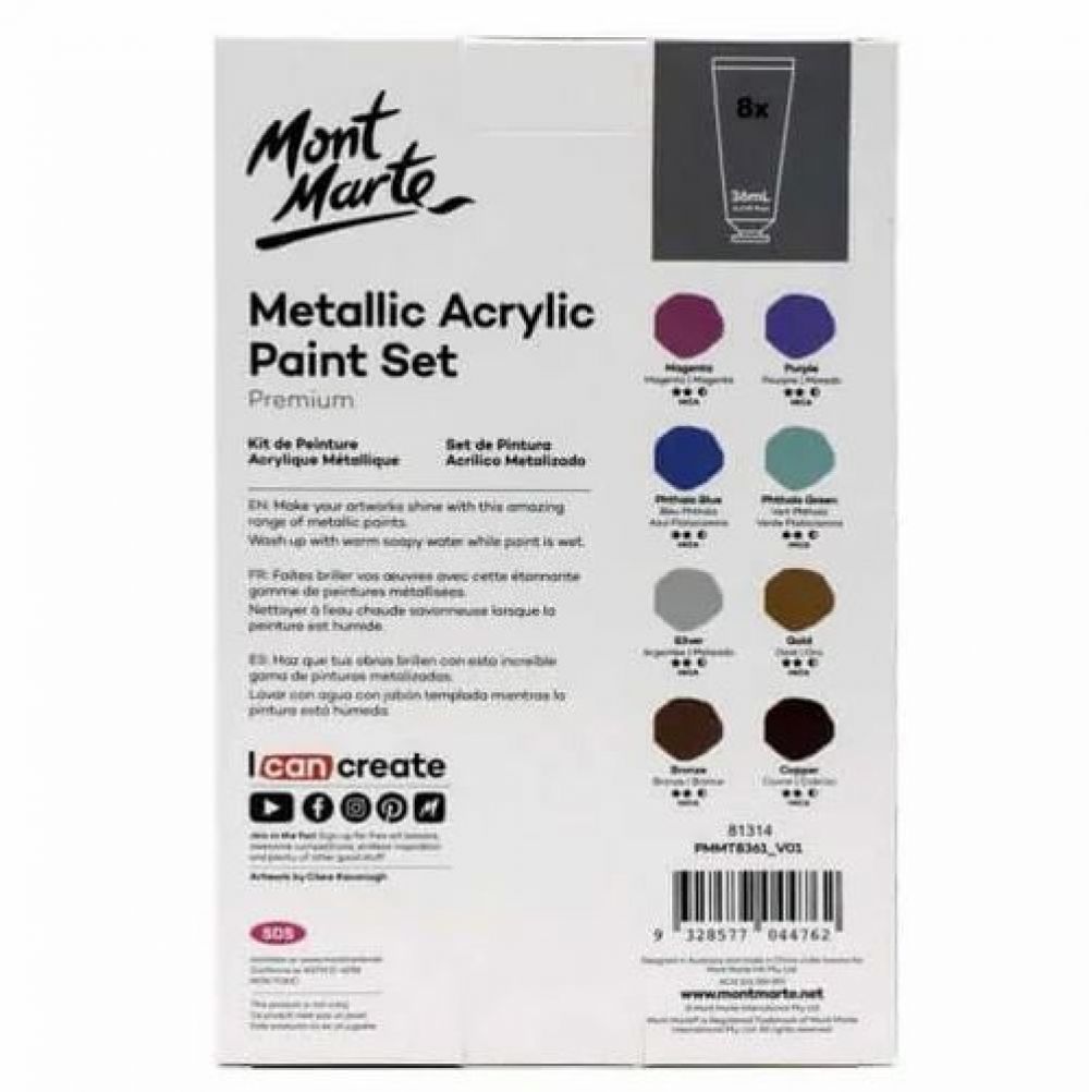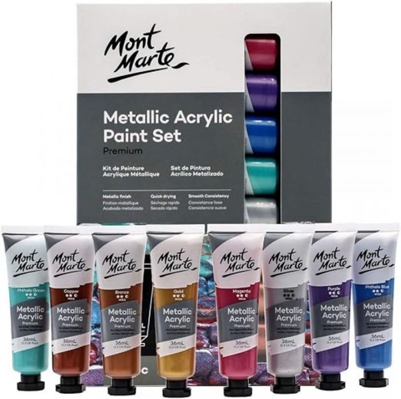 Pintura Acrilica Mont Marte 8 colores metalizados de 36 ml