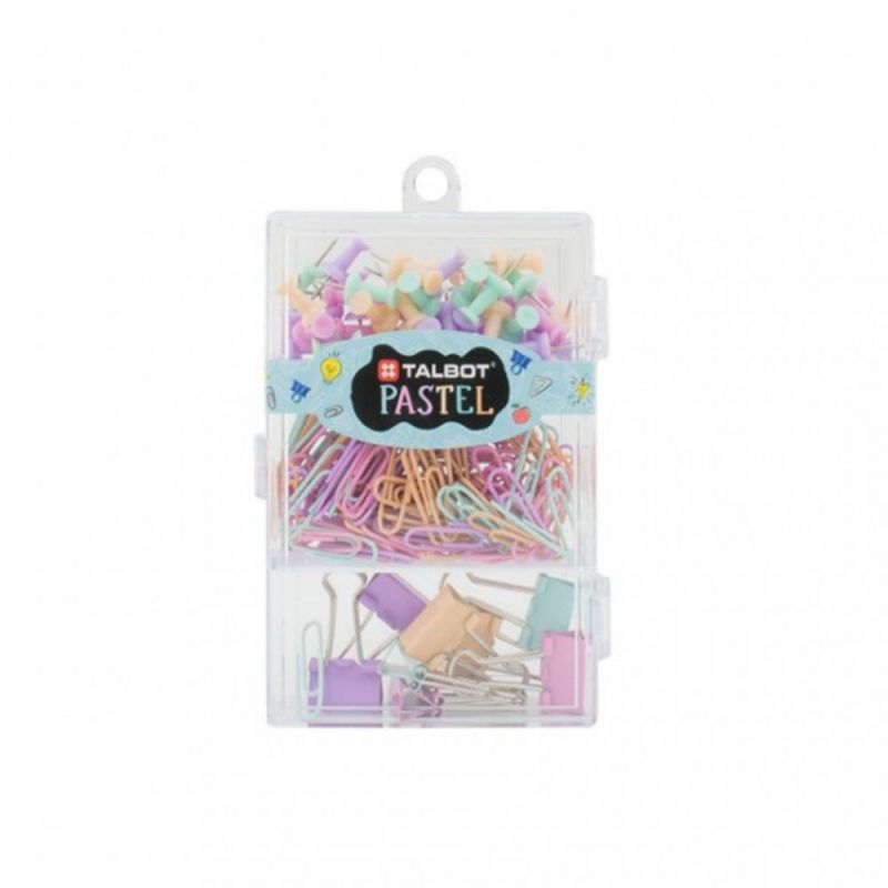Set, Talbot Colors Pastel, Chinchetas y Clips, Caja Plastica Rectangular