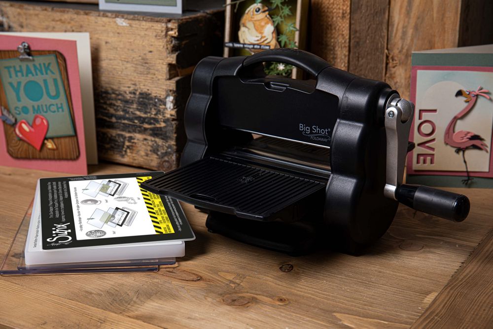 - Componentes incluidos: el contenido incluye 1 máquina plegable Big Shot, 1 plataforma, 1 adaptador delgado, 1 par de almohadillas de corte estándar, 1 folleto de instrucciones (idioma español no garantizado).